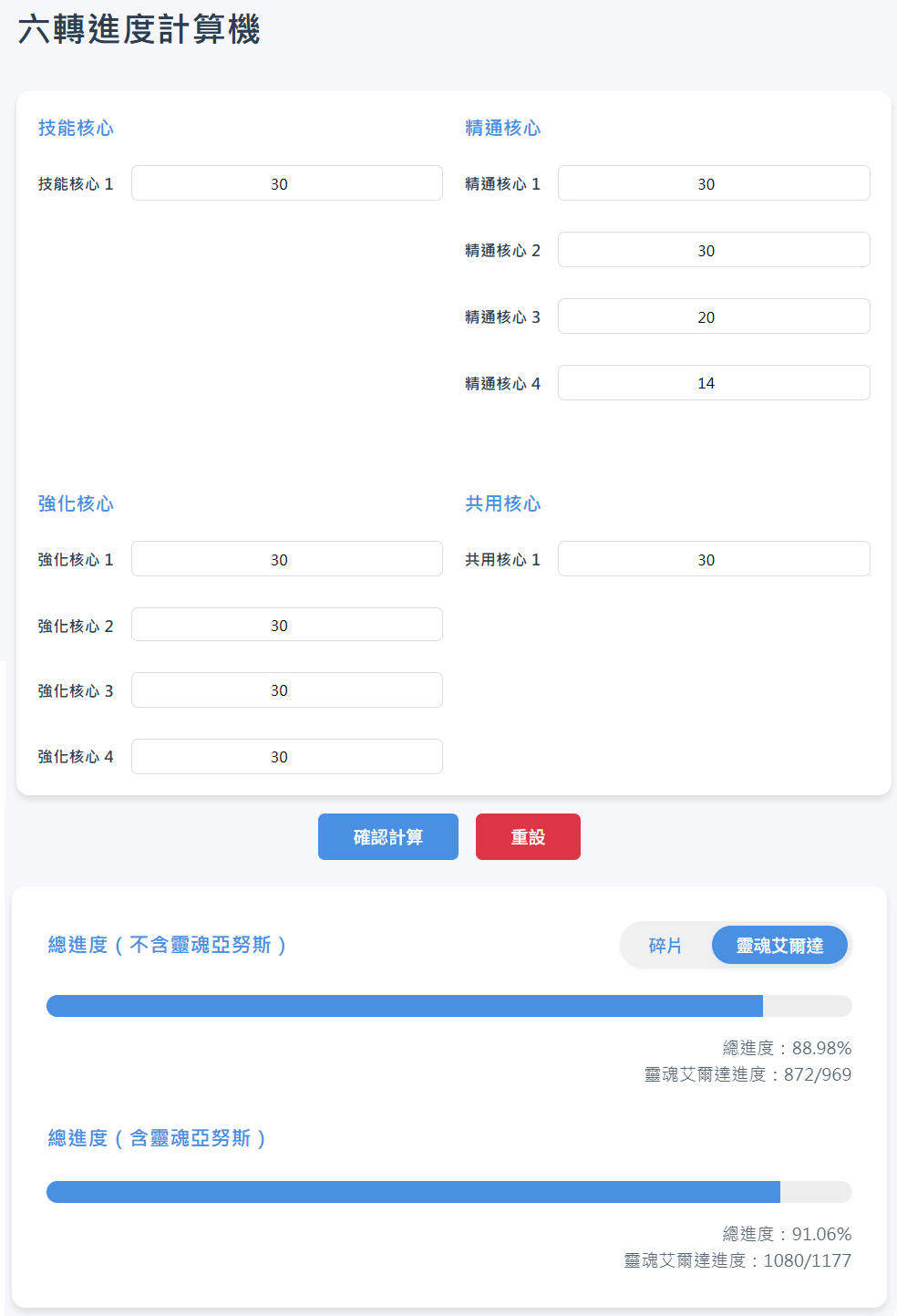 做了一個【六轉進度計算機】跟【寶玉模擬器】,簡介會放在最下方