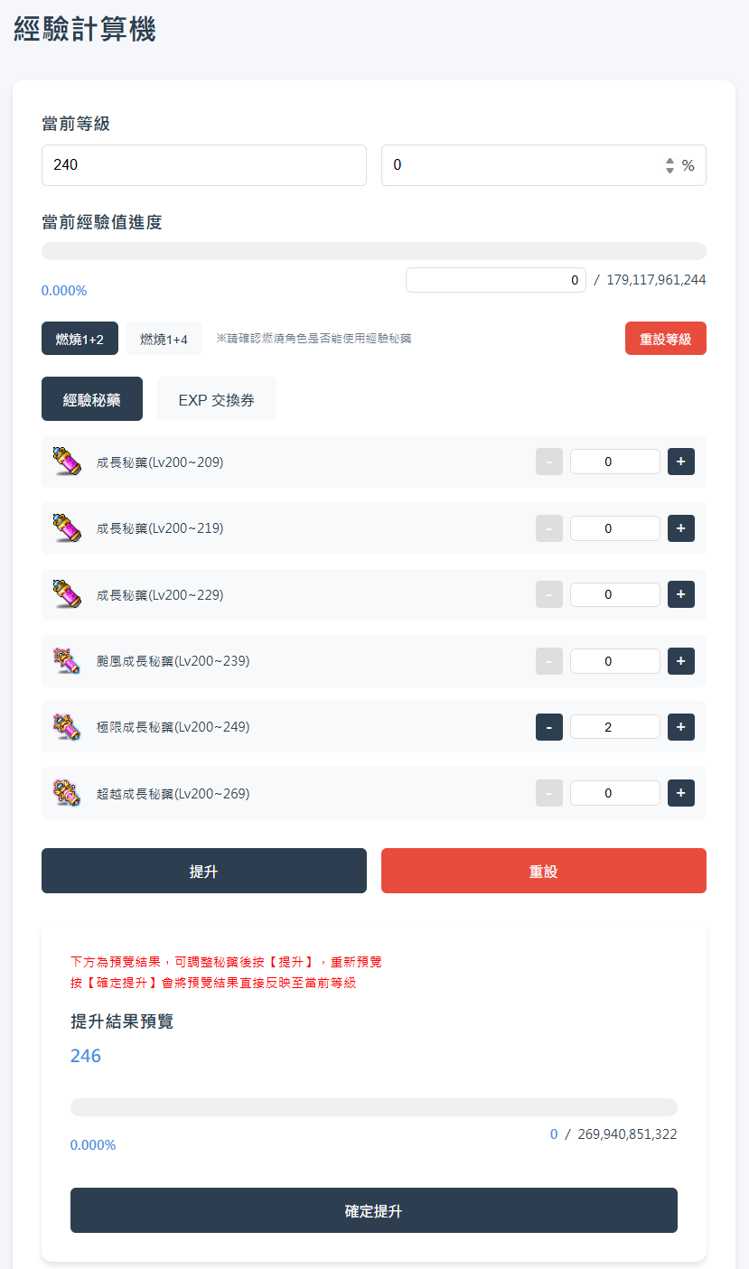 經驗計算機的部分新增【究極聯盟成長秘藥】,再麻煩大家如果有錯誤回報給我QQ